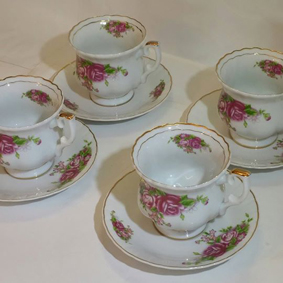 ลายกุลายดูคลาสิค เนื้อเงางามของประเทศโรมาเนืย(ยุโรป) 4ชุดไม่มีจานขนมมีถ้วยกาแฟพรอมจานรองค่ะส่งฟรีค่ะ
