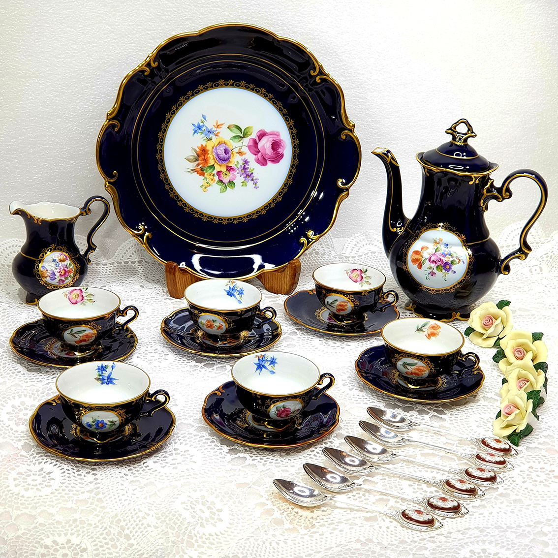 งานโบราณ ของเยอรมันแท้ค่ะ ขอบทอง งานดี100% สีน้ำเงิน 5ดูโอ 1กา 1โถนม ถาดกลม ขนาดใหญ่มากๆกว้าง11 น้ว จานรอง6 แก้ว 6 ชิ้นค่ะ รวมๆ 16 ชิ้น ลวดลายงดงาม หรูหรา มากๆค่ะ อายุ มากก่วา 100ปี งาน ชาววัง สมัยก่อน พอมีให้ชม ให้สะสม นะค่ะ กันค่ะ กาสูง 8 นิ้ว กว้าง 4.5-5 นิ้ว โถนนม สูง4 นิ้ว กว้าง3.5 นิ้ว จานรองกว้าง4.5 นิ้ว แก้ว สูง2 นิ้ว กว้าง3 นิ้ว งานพร้อมส่ง ถึงไทยแล้วค่ะ บริการ ส่งฟรี ยินดีเลยค่ะ