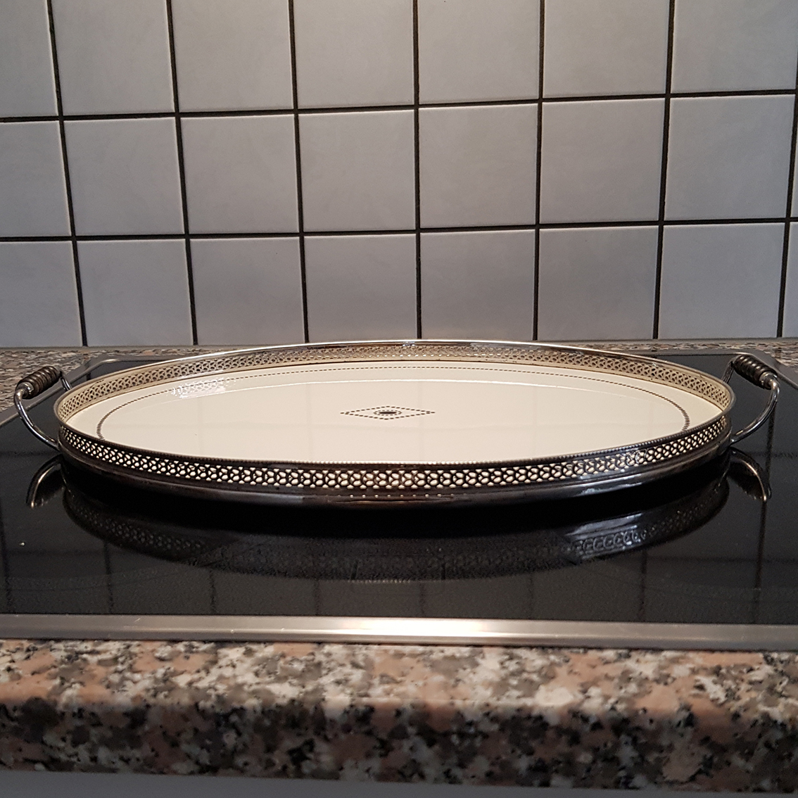 ถาดเนื้อพอร์เซเลน เซรามิค กว้าง12 นิ้ว ยาว 16 นิ้ว งานโบราณ อายุ มากก่าว 80 ปีค่ะ งานยุโรปแท้ สภาพดี100% ขอบแสแตนแลต ลายฉลุ สวยงาม น่าใช้คะ สวยมาก พร้อม ส่งค่ะ ถึงไทยละค่ะ บริการส่งฟรีค่ะ