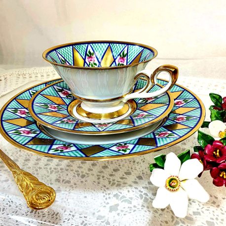 งานโบราณ ขอบทองแท้ ทำด้วยมือ เนื้อพร์เซเลน บางเบา น่าใช้ น่าสะสมคะ หายาก อายุ 80-90ปีคะ งดงาม ขอบทอง สมบูรณ์ 100% บาวาวเรีย เยอรมันแท้ค่ะ แก้วใหญ่ น่าใช้ หูจับหรู ลวดลาย งดงาม ทำด้วยมือ สมัยก่อนคะ ขนาด แก้สูง 3″จานรอง กว้าง 5.5″ จานขนม กว้าง 7.9″ ขนาดใหญ่ มาก น่าใช้ น่าสะสมคะ มีชุดเดียว ในโลกจ้า การันตี มีชุดเดียวคะ พร้อมส่ง ถึงไทยละคะ