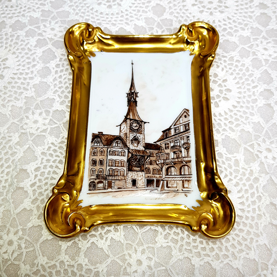 งานเนื้อ พอร์เซเลน เซรามิก ขอบทองสวย เริศมากๆ ทองยูโรป การันตีไม่ลอกไม่ดำนะค่ะ รูปภาพ เมืองหลวง สวิตเซอร์เลนค์ เมืองเก่าแก่ โบราณ สมัย 80ปีที่แล้วค่ะ งานดีๆ การันตีนะค่ะ สูง 6.5 นิ้ว กว้าง 4.9นิ้ว ค่ะ มี ที่แขวน ผนังได้ค่ะ หรือตั้งโชว ก็ สวยค่ะ ทองเงาวาว มากๆค่ะ บริการส่งฟรีค่ะ