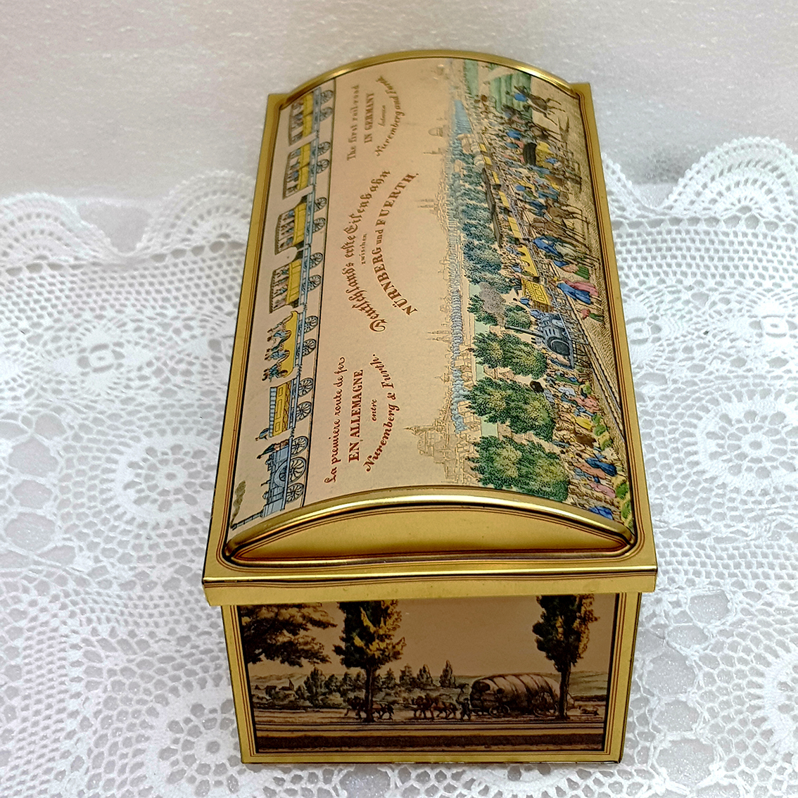 กระปุก งาน ของเยอรมัน รูปภาพเมืองเก่าแก่โบราณ ของ เมืองเยอรมัน บอก ประวัติ เมือง น่าสะสม มากค่ะ งานดี น่าใช้ น่าสะสมค่ะ กว้าง 4.5 นิ้ว ยาว 9 นิ้ว สูง3.9 นิ้ว เป็น อลูมิเนียม ของเก่าแก่โบราณ อายุ มากก่วา 80-90 ปี ใส่ เงิน ใส่ของสะสมค่ะ สวย พร้อมส่งค่ะ
